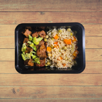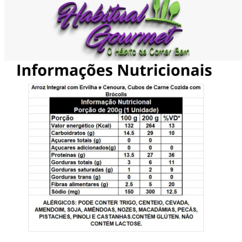 1, 2 ou 3 unid - Arroz com Ervilha e Cenoura, Cubos de Carne Cozida com Brócolis