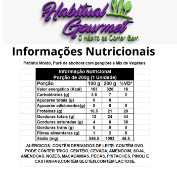 1, 2 ou 3 unid - Patinho Moido, Purê de Abobora com Gengibre e Mix de Vegetais