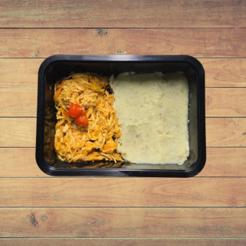 1, 2 ou 3 unid - Frango Desfiado ao Molho Fresco com Cenoura Ralada, Purê de Batata Doce com Gengibre