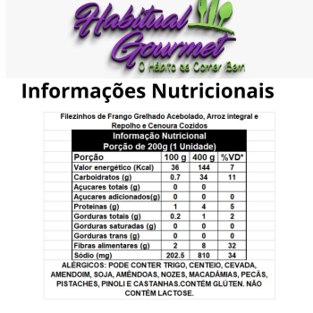 1, 2 ou 3 unid - Filézinhos de Frango Grelhado Acebolado, Arroz e Repolho com Cenoura Ralados