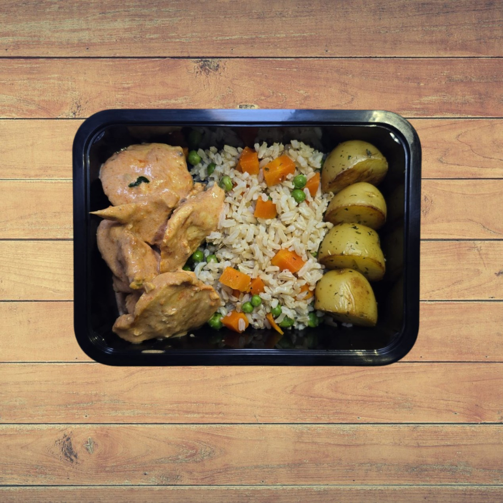- 1 ou 2 Unid. Filé de Frango Grelhado ao Molho Rose, Batata Sauté e Arroz Primavera