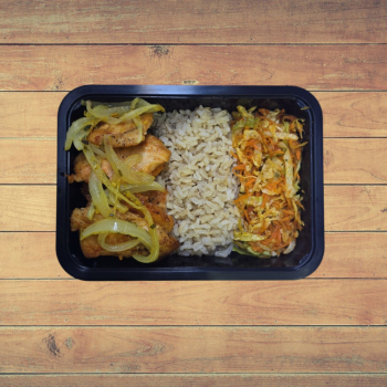 - 1 ou 2 Unid. Filézinhos de Frango Grelhado Acebolado, Arroz e Repolho com Cenoura Ralados