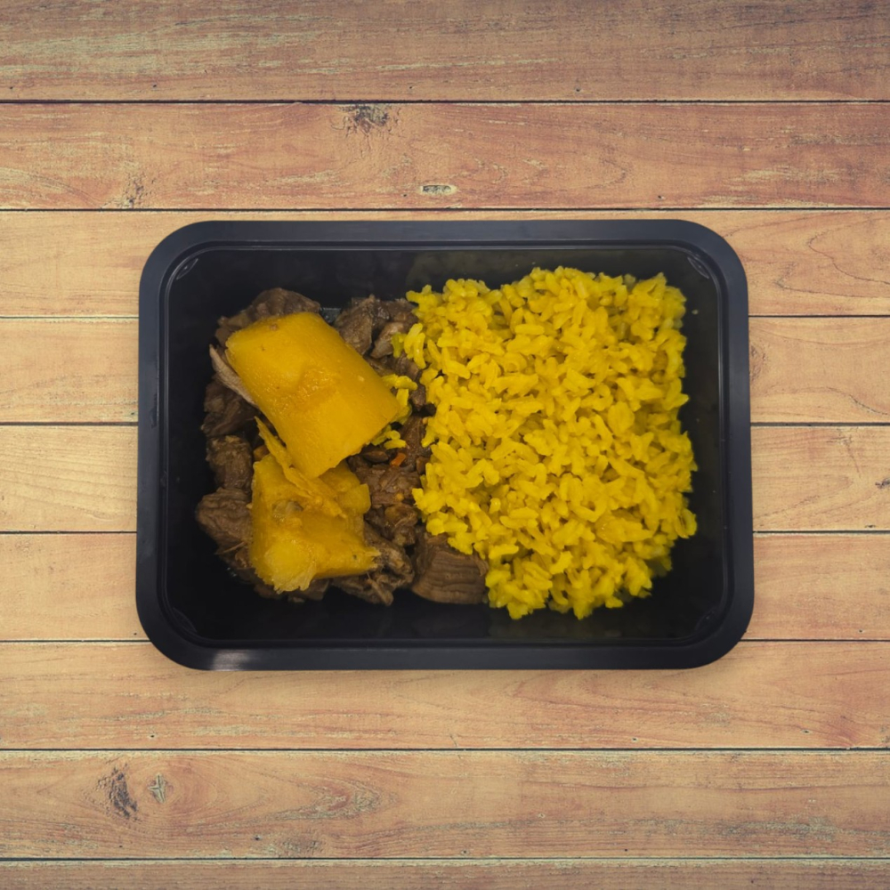 1 ou 2 Unid. Picadinho de Patinho com Mandioca e Arroz com Açafrão