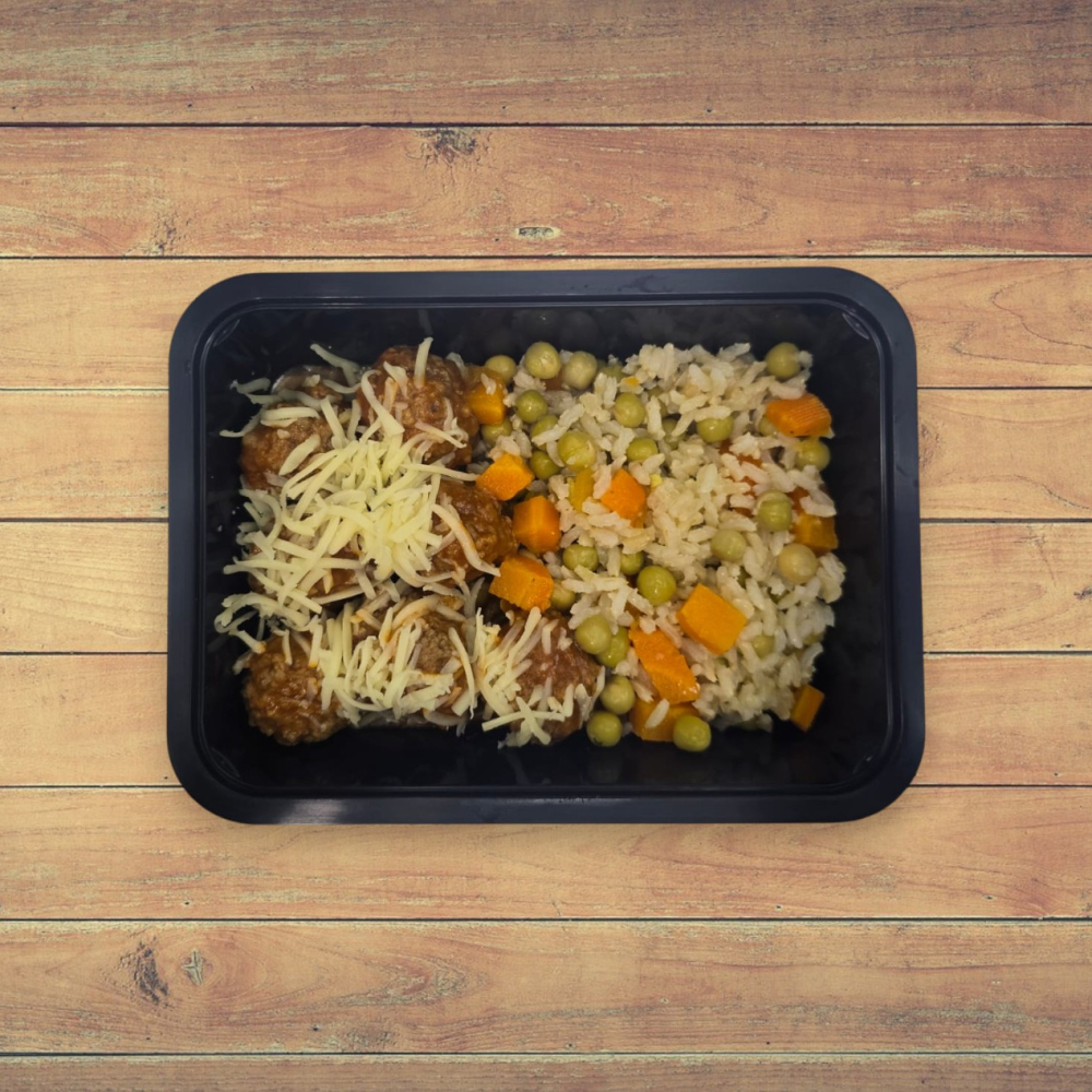 1 ou 2 Unid. Almôndegas de Patinho ao Molho Fresco com Arroz Primavera