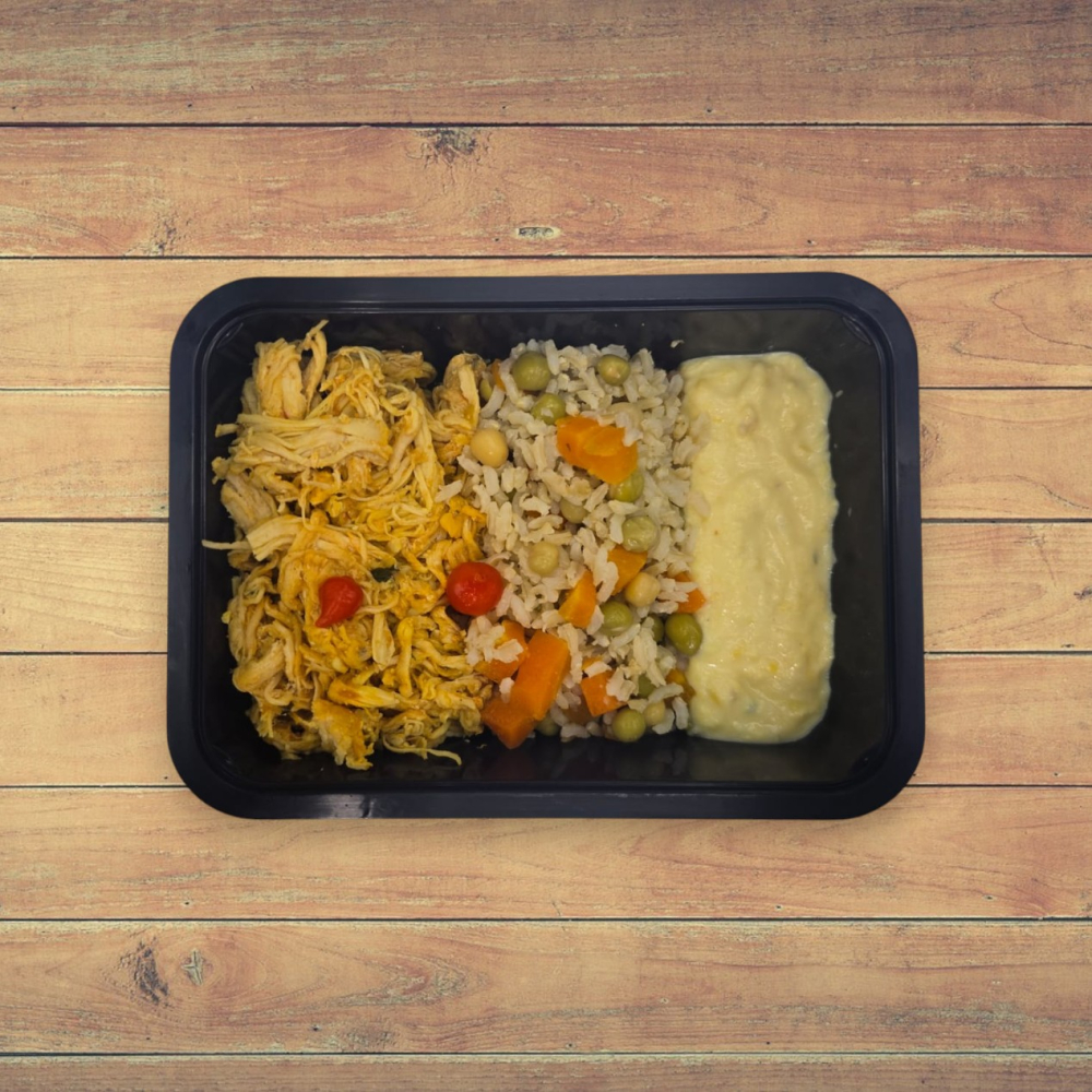 1 ou 2 Unid. Frango Desfiado ao Molho Fresco com Creme de Milho e Arroz Primavera