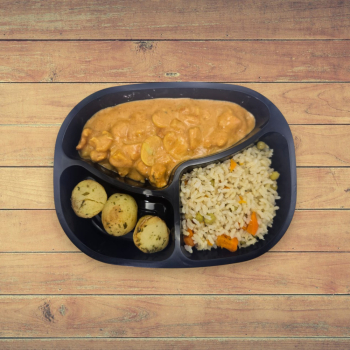 1 ou 2 Unid. Strogonoff de Frango com Arroz Primavera e Batata Sauté