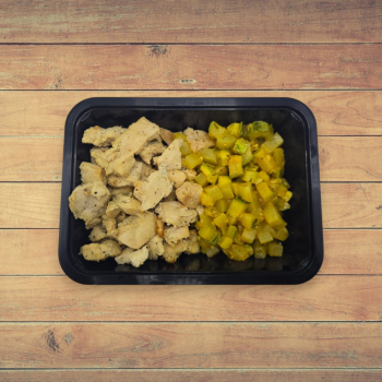 1 ou 2 Unid. Cubos de Frango ao Lemon Pepper com Abobrinha e Chuchu Refogado