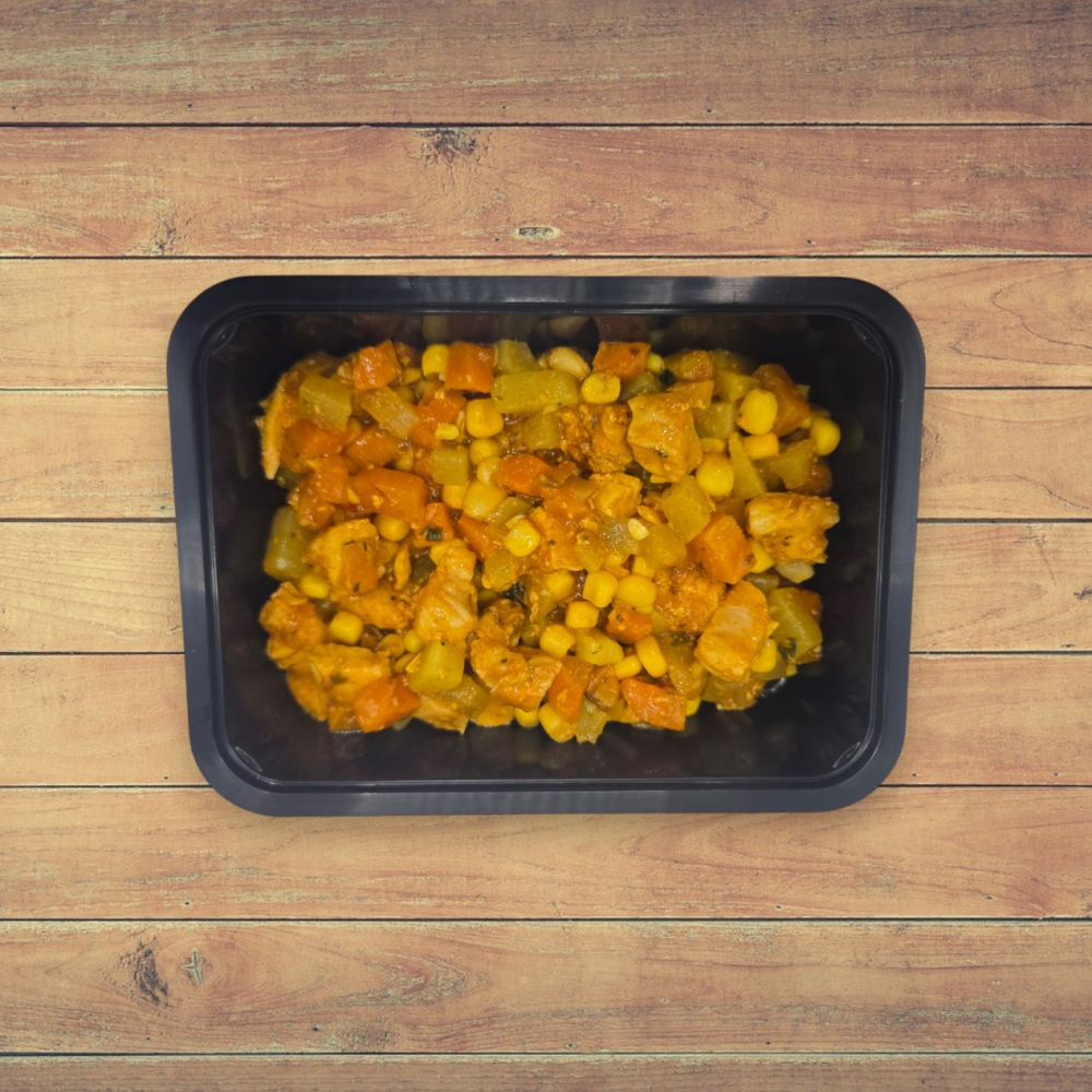 1 ou 2 Unid. Cubos de Frango refogado com Milho, Cenoura e Chuchu