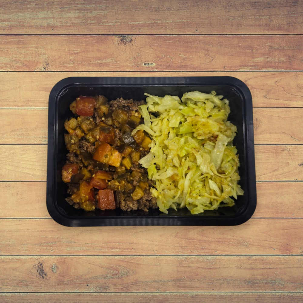 1 ou 2 Unid. Patinho Moído Refogado com Berinjela, Tomate e Repolho