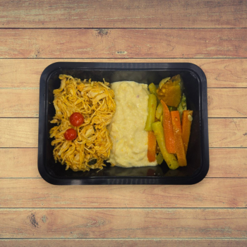 1 ou 2 Unid. Frango Desfiado ao Molho Fresco com Creme de Milho e Vegetais Salteados