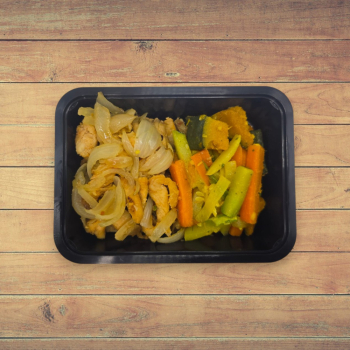 1 ou 2 Unid. Tiras de Frango Acebolado com Mix de Vegetais